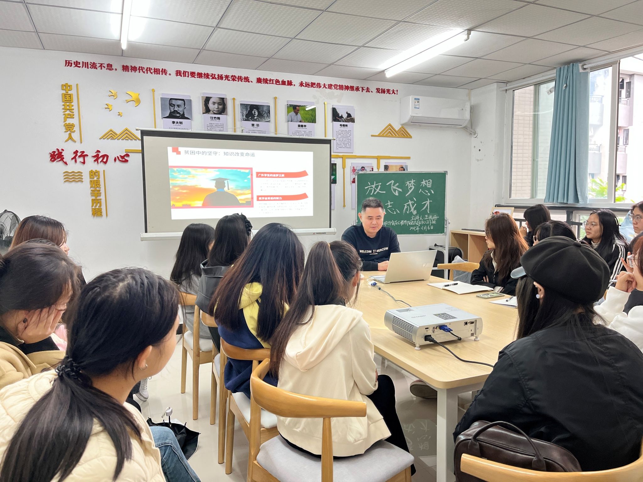 11月06日14:30,我院初心工作站于蓝雾苑2舍4楼活动室开展第61期“寝室工作日”活动。王兆丹副教授以“放飞梦想,励志成才”为主题开展分享,共计17人参加。