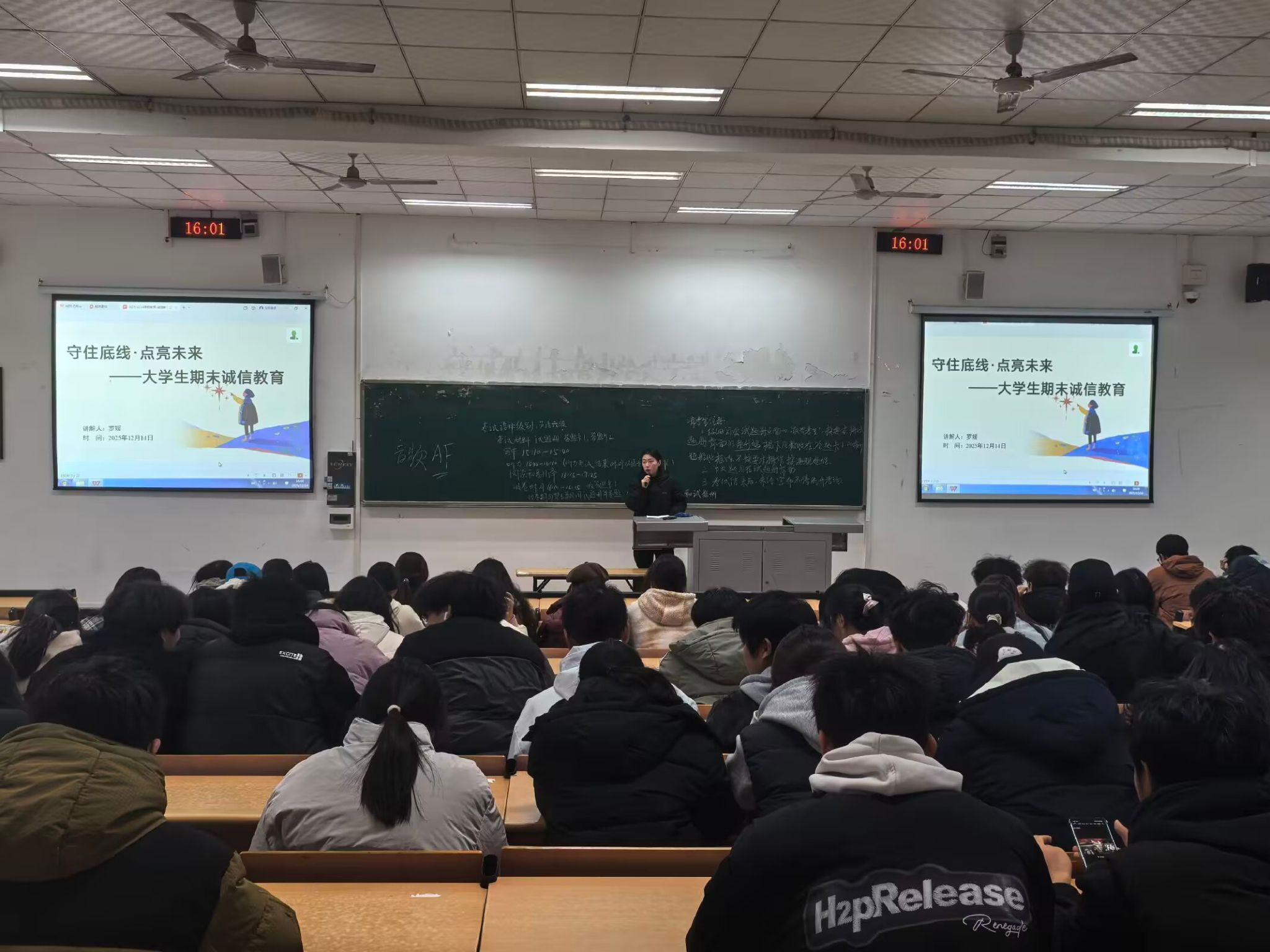 为筑牢校园安全防线,强化学生诚信考试意识,2025年12月14日,我院辅导员于明辨楼群组织开展周前教育,全体在校本科学生参加。