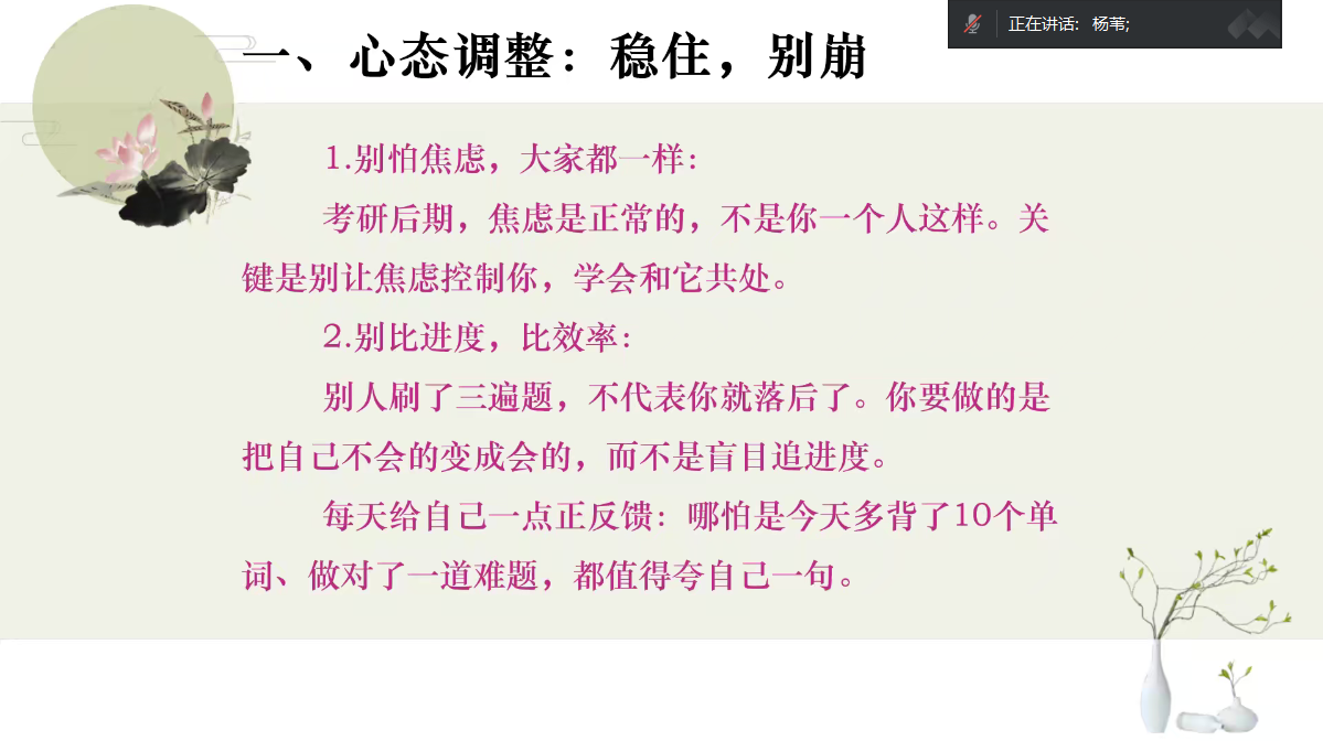 为帮助备考学子明确复习方向,掌握实用技巧,缓解备考焦虑,2025年10月16日下午,我院于线上平台举办“研路同行,筑梦未来”考研冲刺动员会。