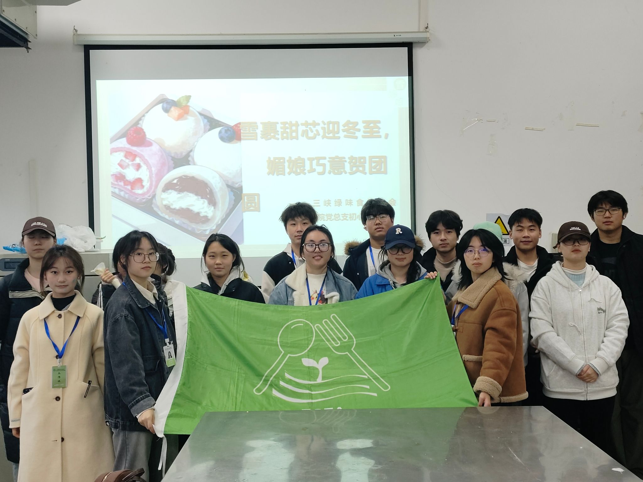2025年12月21日,正值冬至,为传承传统节气文化,增进同学交流,并让同学们在动手实践中感受美食制作的乐趣,我院三峡绿味食品协会于慎思楼2栋103、106教室组织开展“雪裹甜芯迎冬至,媚娘巧意贺团圆”雪媚娘DIY活动。